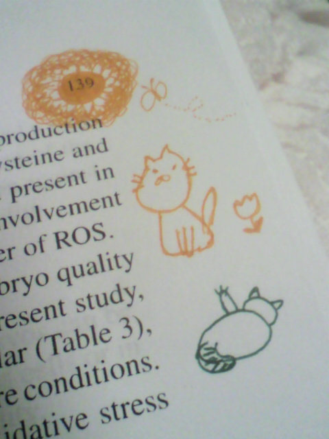 今日あたしが読んでた論文の隅っこの落書きです(笑